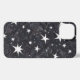 Estrellas y constelaciones plateadas brillan en un fondo negro, creando un patrón celestial y elegante.