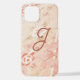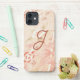 El diseño del estuche Soft Pink Floral Monogrammed iPhone presenta un bonito fondo rosa, floral, con un aspecto de tejido lujoso. Su monograma se muestra en primer plano central en un bonito color rosa-dorado. Muy bonito, muy femenina.
