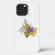 Artistically drawn, flower, honey bee with contrasting colors, yellow, bright, blooming california poppy and blue wild plants on white background.