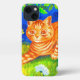 Estuche para iPhone que presenta la pintura animal de Louis Wain en Cat Stalking (1860-1939). Un gato a rayas naranja camina por un campo verde por la noche. Flores blancas, violetas y rojas están en primer plano. Un regalo maravilloso para los amantes de los gatos y el arte inglés.