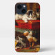 Estuche para iPhone con pintura al óleo de Henriëtte Ronner-Knip's Pride la Madre (1821-1909). Un gato madre se sienta en una silla roja y observa a sus cinco gatitos jugando en la silla y la cortina dorada. Un regalo fantástico para los amantes del gato y del romanticismo.