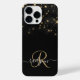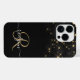 Crea tu propio estuche para iPhone con brillo de diamante negro y dorado personalizado con tu monograma y nombre personalizado.
