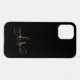 Estuche para iPhone monogramado moderno con guión femenino de oro negro. Personalice fácilmente este moderno y elegante estuche de teléfono con su monograma y nombre personalizado.
