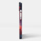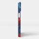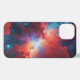 Una galaxia arremolinada de tonos rojos y azules que arden en el espacio, rodeada de estrellas brillantes.