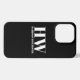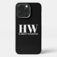 Personalizar, monograma personalizado, letras iniciales y nombre simple negro y blanco minimalista moderno elegante moda clásica elegante estuche de iphone elegante. Personalizable de texto blanco, fondo plano negro sólido.