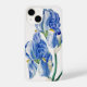 Este es un colorido dibujo de acuarela vintage de iris azules sobre un fondo blanco.