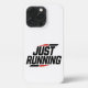 Ce design minimaliste et percutant se distingue par son élégance et son dynamisme, idéal pour les passionnés de course et de fitness. Le texte "JUST RUNNING" est mis en avant avec une typographie épaisse et inclinée vers l'avant, ce qui évoque la vitesse et le mouvement, reflétant parfaitement l'essence de la course à pied.