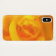 Un primer plano 3D creado en Vue, de una rosa amarilla ardiente, sus pétalos translúcidos de oro y naranja que brillan bajo la cálida luz del sol. La alegría soleada de la rosa amarilla se utiliza a menudo para simbolizar la amistad y el afecto cálido.