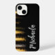 Resumen de las luces nocturnas el brillante estuche de teléfono minimalista negro dorado. Foto de brillantes luces nocturnas brillantes reflejo del mar en colores brillantes negros y dorados. Disfrute de la fascinante belleza del mar por la noche con nuestra elegancia Abstracta de las Luces Nocturnas del Mar Luminoso Oro Negro. Sorprendente diseño abstracto que combina las brillantes luces nocturnas, el mar profundo y las brillantes reflexiones de oro. La elección perfecta para añadir un poco de estilo y brillo a tu vida. ¡Experimenta la magia del mar por la noche!