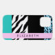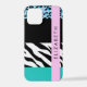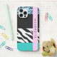 Funda Para iPhone Leopard Print, Zebra Print, Blue, Your Name