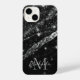 Funda Para iPhone Línea espumosa moda negra plateada abstracta Monog