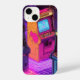 Un grupo de máquinas recreativas antiguas se iluminan con luces de neón vibrantes. La escena se sitúa en el fondo de una galaxia estrellada, creando una atmósfera nostálgica pero futurista.
