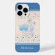 Caso artsy Boho mariposa y teléfono botánico - elige nuestro equipo (muchos de ellos para elegir), con bonito azul y gris en un fondo beige que se personaliza fácilmente con tu nombre. ¡Muy elegante!