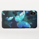 Fabuloso, brillante, azul y amarillo, mariposa nocturna sobre fondo oscuro.
