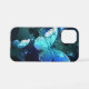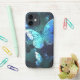 Fabuloso, brillante, azul y amarillo, mariposa nocturna sobre fondo oscuro.