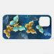 Composición de vuelo, joyería, oro y mariposas oscuras sobre fondo de joyería texturada. Mariposa dorada.