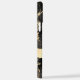 Funda Para iPhone Mármol negro y dorado, nombre negro y monograma de