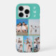 Modern Monogram 5 Photo Collage Aqua Blue Teal iPhone Case