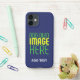 FUNDA PARA iPhone MODERNA PLANTILLA DE TEXTO DE IMAGEN AZUL DE NAVY