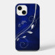Funda Para iPhone Monograma azul real giratorio de hojas plateadas