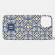 Funda Para iPhone Monograma de patrón marino y amarillo mediterráneo