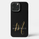Elegante Funda elegante y moderno de estilo negro Gold Script Monograma delgado para iPhone 13 Pro Max. Un elegante monograma de escritura dorada combinado con una limpia fuente san-serif blanco, le da un aspecto contemporáneo.