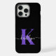 Funda Para iPhone Monograma moderno de escritura púrpura negra