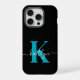 Funda Para iPhone Monograma moderno de escritura Verde azulada negra