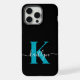 Este sencillo y elegante Funda para iPhone 15 Pro Max con tu nombre en un tipo de letra de guión moderno escrito en blanco sobre tu primera inicial en un tipo de letra de tapa moderna en verde azulado se vería fabuloso en tu teléfono móvil y lo protegerá de la rotura. Es de diseño y a la vez muy clásico.