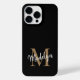 Funda Para iPhone Monograma moderno de oro negro Nombre de guión fem