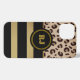 Funda Para iPhone Monograma moderno Leonard Print Gold Black Stripes