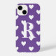 Funda Para iPhone Monograma moderno Patrón cardíaco Morado Blanco