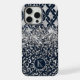 Monograma Purpurina de impresión Leopardo Moderno para iPhone 15 Pro Max Funda Phone Estuche con purpurina de imitación de impresión de leopardo plateado y azul y patrón geométrico de diamante personalizado con su monograma personalizado. Un regalo perfecto para ella para Navidades, cumpleaños, Día de la Madre y más ya sea novia, hermana, madre, amigos. Creado por Evco Studio www.zazzle.com/store/evcostudio