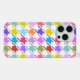 Diseño de patrones de superficie de estilo Houndstoth en una brillante mezcla de colores sobre un fondo blanco.