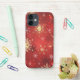 Funda Para iPhone Navidades Copos de nieve dorados con fondo rojo