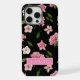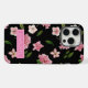 Funda Para iPhone Negro botánico con flores rosadas