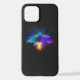 Luciérnagas mecánicas antiguas con bombilla de luz y finas alas brillan naranja, violeta, turquesa sobre fondo negro. Estilo Steampunk.