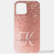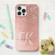 Personaliza fácilmente este diseño de estuche de teléfono de moda de moda con purpurina brillante de oro rosa bonito sobre un fondo metálico rosa cepillado de oro.