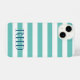 franjas náuticas verde azuladas azules y blancas nombre personalizado Funda iPhone 14. Cuidada cubierta de teléfono con tema marítimo con banda negrita. Color de fondo personalizado. Añadir su propio nombre o iniciales de monograma. Navidades de Guay o idea de regalo de cumpleaños para hombres, mujeres y niños.