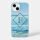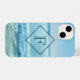 Este diseño de estuches de iphone de playa de la costa muestra una foto de una impresionante ola de océano estrellándose sobre la costa, con un monograma inicial en el diamante central.
