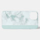 Añade un toque de moda a tu nuevo teléfono con este elegante funda decorado con un patrón de mármol en tonos claros de verde marino y turquesa con velada acuática. Personaliza con tu nombre, monograma o una cita que recorre el costado con letras blancas modernas y sutiles sobre una raya acuática pastel, por un poco ahí, tono de tono.