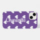 Este es un diseño bonito, personalizado con un patrón de corazones de bonito. Este diseño moderno tiene un patrón de corazones simple en blanco, y es tendencia en morado con tipografía retro. Este bonito diseño es perfecto como regalo personalizado o nuevo accesorio de teléfono para usted. para personalizar, simplemente añada tu nombre usando la personalización de este cuadro de texto. Para personalizar, compruebe la herramienta de edición de diseño. Para obtener ayuda con la personalización, los productos coincidentes o un diseño personalizado, póngase en contacto conmigo a través de zazzle chat o correo electrónico: ursuladawnmoon@gmail.com