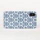 Funda Para iPhone Patrón de Damask de Feuille azul oscuro sobre blan
