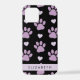 Funda Para iPhone Patrón De Patas, Patas Lilac, Corazones, Tu Nombre