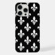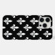 Funda Para iPhone Patrón Fleur de Lis, francés real, blanco sobre ne