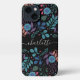 Personalice este funda brillante y colorido con un nombre o un monograma escrito a mano. El diseño presenta un patrón multicolor de flores y hojas botánicas sobre un fondo negro.