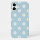 Ilustracion de margarita en un diseño de patrón de superficie sobre un fondo azul pálido.