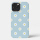 Ilustracion de margarita en un diseño de patrón de superficie sobre un fondo azul pálido.