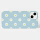 Ilustracion de margarita en un diseño de patrón de superficie sobre un fondo azul pálido.
