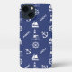 Funda Para iPhone Patrón ilustrativo de navegación Blanco+Azul marin
